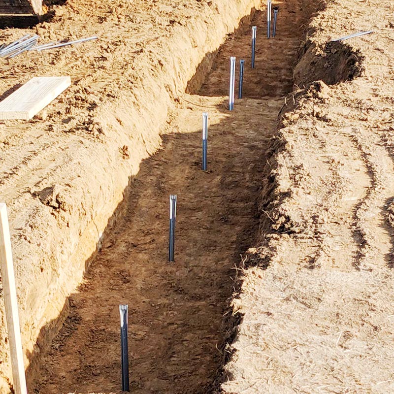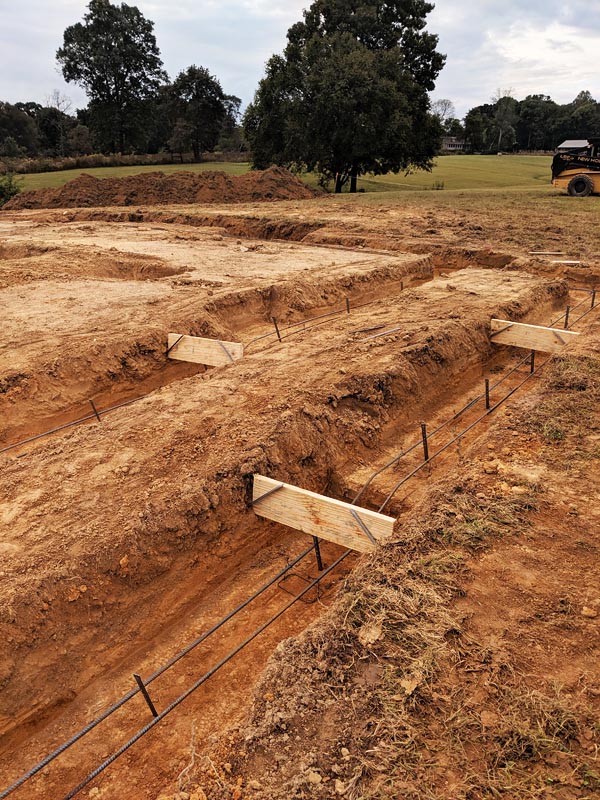 In the photos, you’ll notice the concrete blocks set at varying heights—these are called step downs. As the terrain changes elevation, this method allows the foundation to follow the natural grade of the land while maintaining strength and proper load distribution. It’s one of the many ways experience and attention to detail make a lasting difference in new home construction. When it comes to starting a build, trust PRS Construction to get your foundation right from the very first pour.